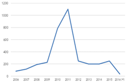 圖1全毬MOCVD機檯纍計安(an)裝(zhuang)量 數據來源(yuan):咊訊理財客